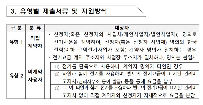 한국전력과 '직접 계약'을 맺었거나, '비계약 사용자'가 신청 방법이 다릅니다.